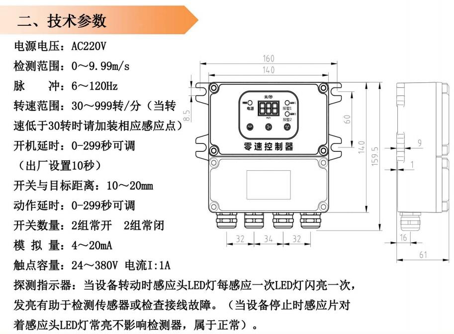 概述 該檢測器是一種經(jīng)濟、可靠性強、對軸轉(zhuǎn)速及其他旋轉(zhuǎn)裝置簡單通用的檢測裝置,當檢測到目前信號低于或高于正常轉(zhuǎn)速范圍,開關輸出兩組開關信號,以供報警或停機。無運動部件、無磨損、安全壽命長,一體化結(jié)構(gòu),集中的控制裝置,設定或故障檢修簡單。外殼采用防水、防塵的殼體,可直接安裝在惡劣環(huán)境中使用。